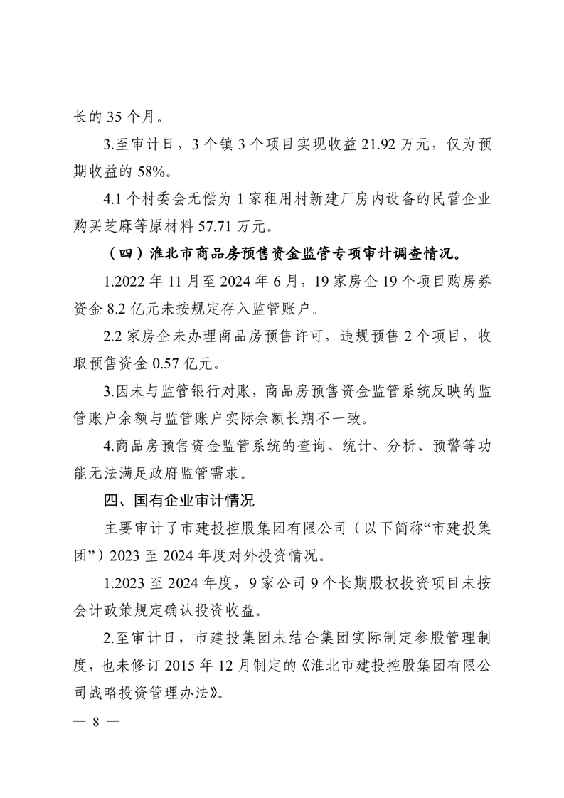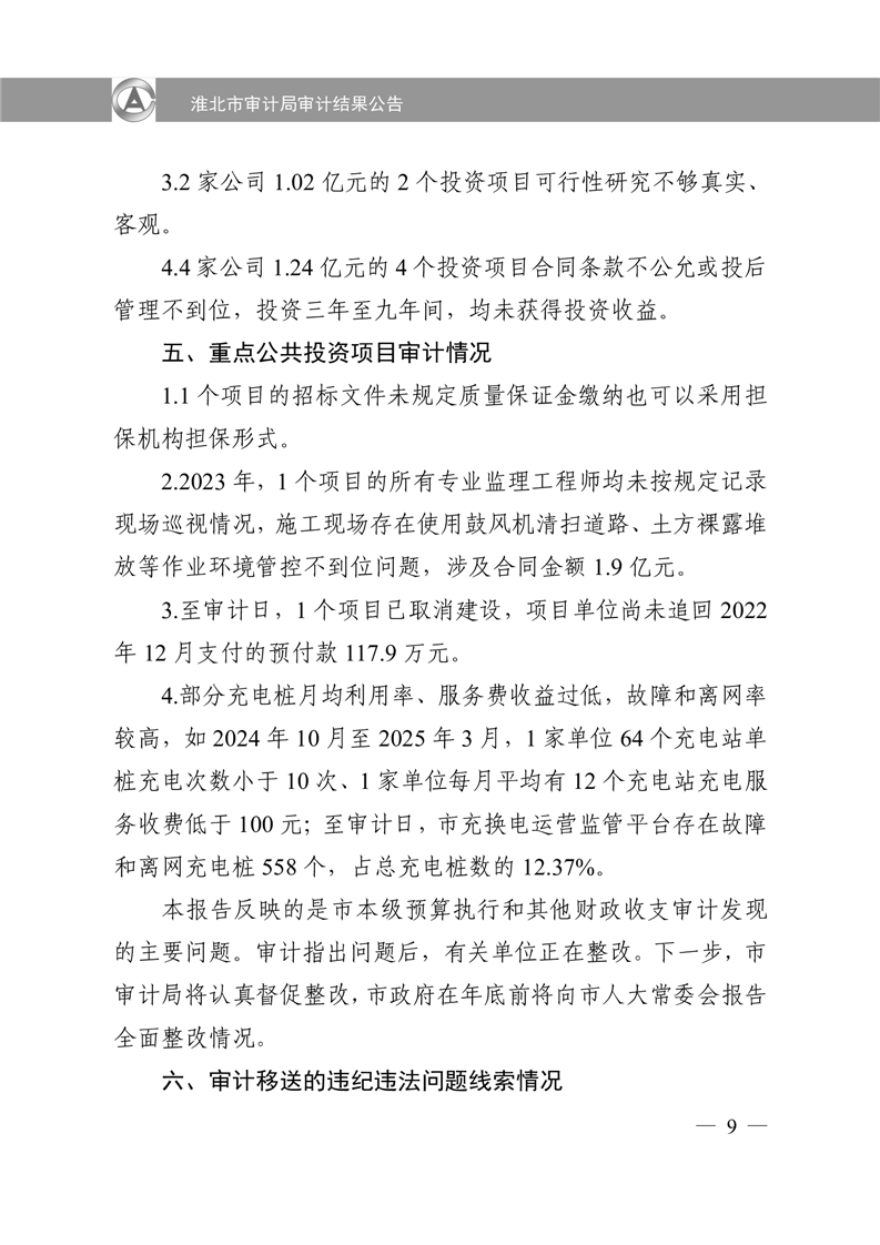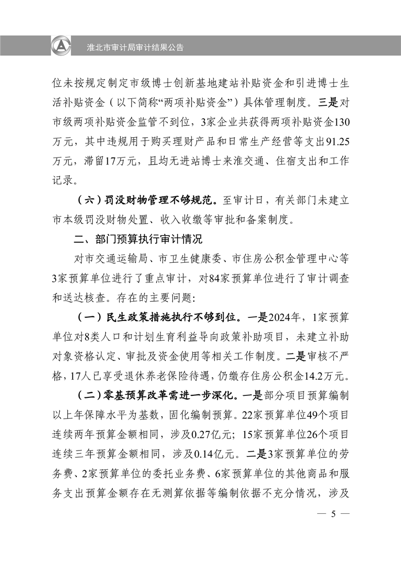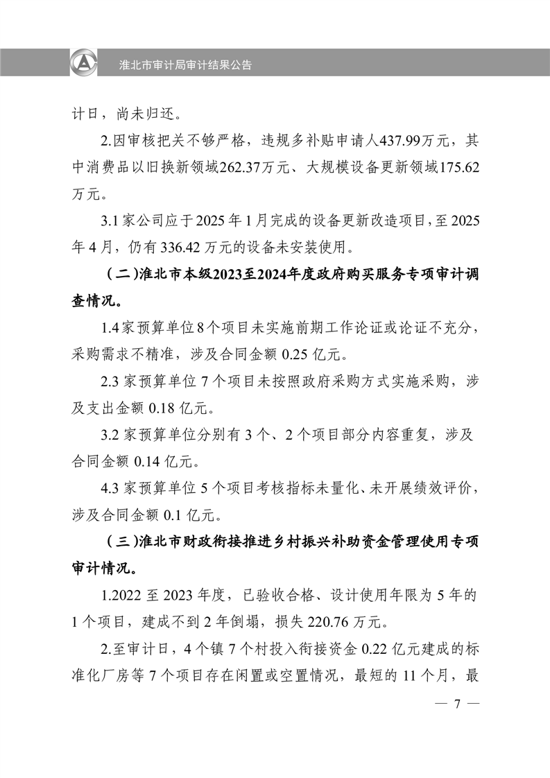 3044永利集團審計結果公告2025年第1號:淮北市2024年度本級預算執行和其他財政收支情況審計結果